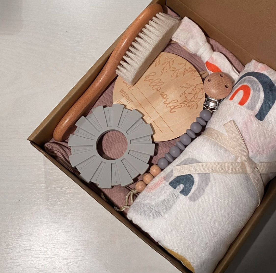 : صندوق هدايا مواليد يحتوي على مستلزمات الأطفال